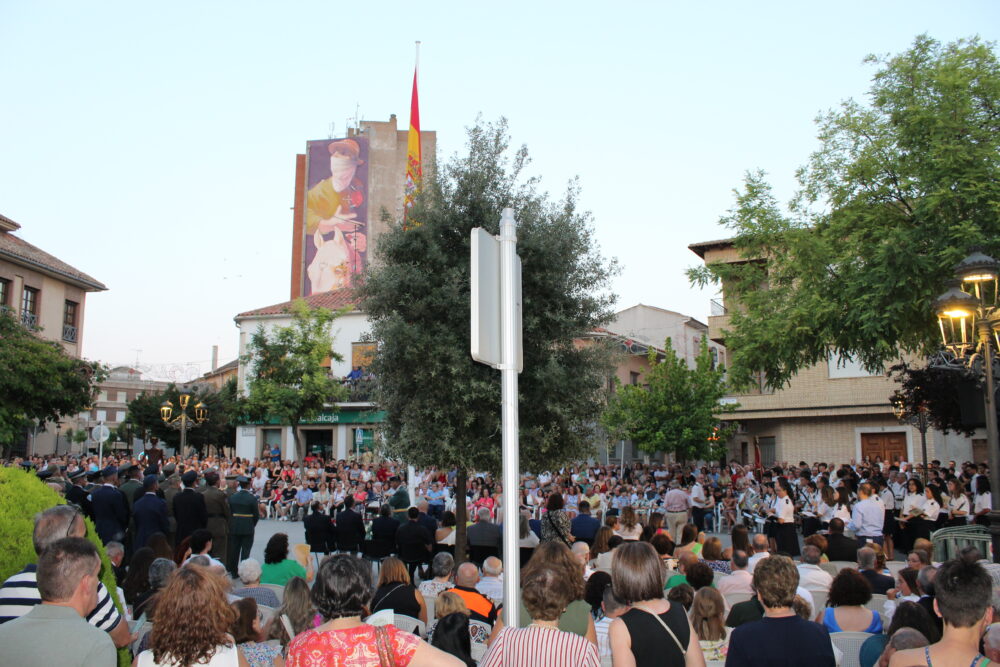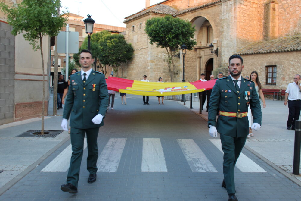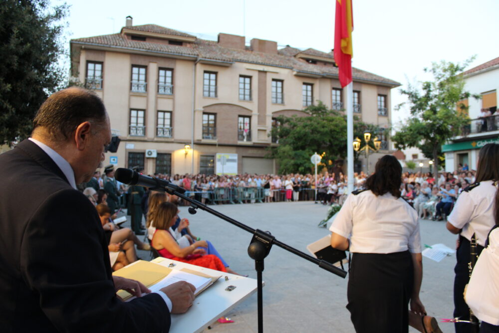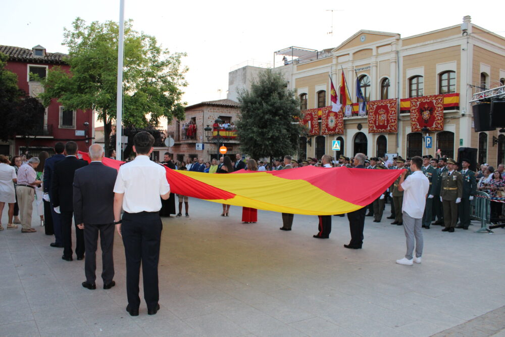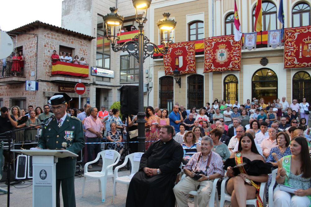 La noche del domingo 4 de agosto la Plaza del Ayuntamiento de Quintanar de la Orden se llenaba de vecinos y vecinas de la localidad para asistir a un acto de izada de la Bandera Nacional.