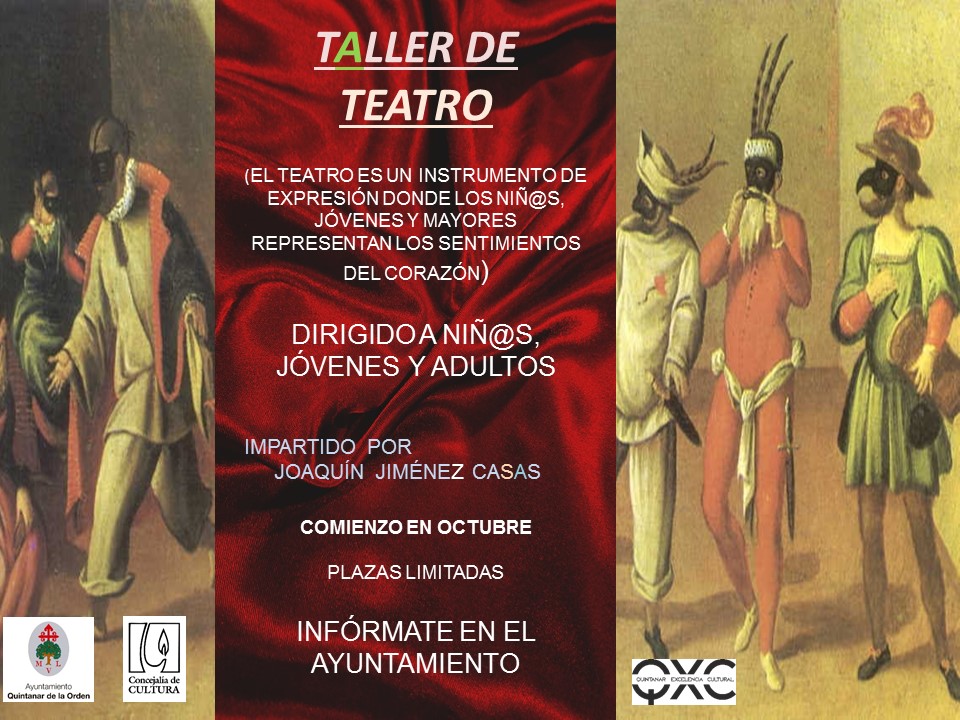 El próximo mes de octubre comienza el Taller de Teatro impartido por Joaquín Jiménez y dirigido a niños y niñas, jóvenes y adultos. Plazas limitadas. Inscripciones en el Ayuntamiento