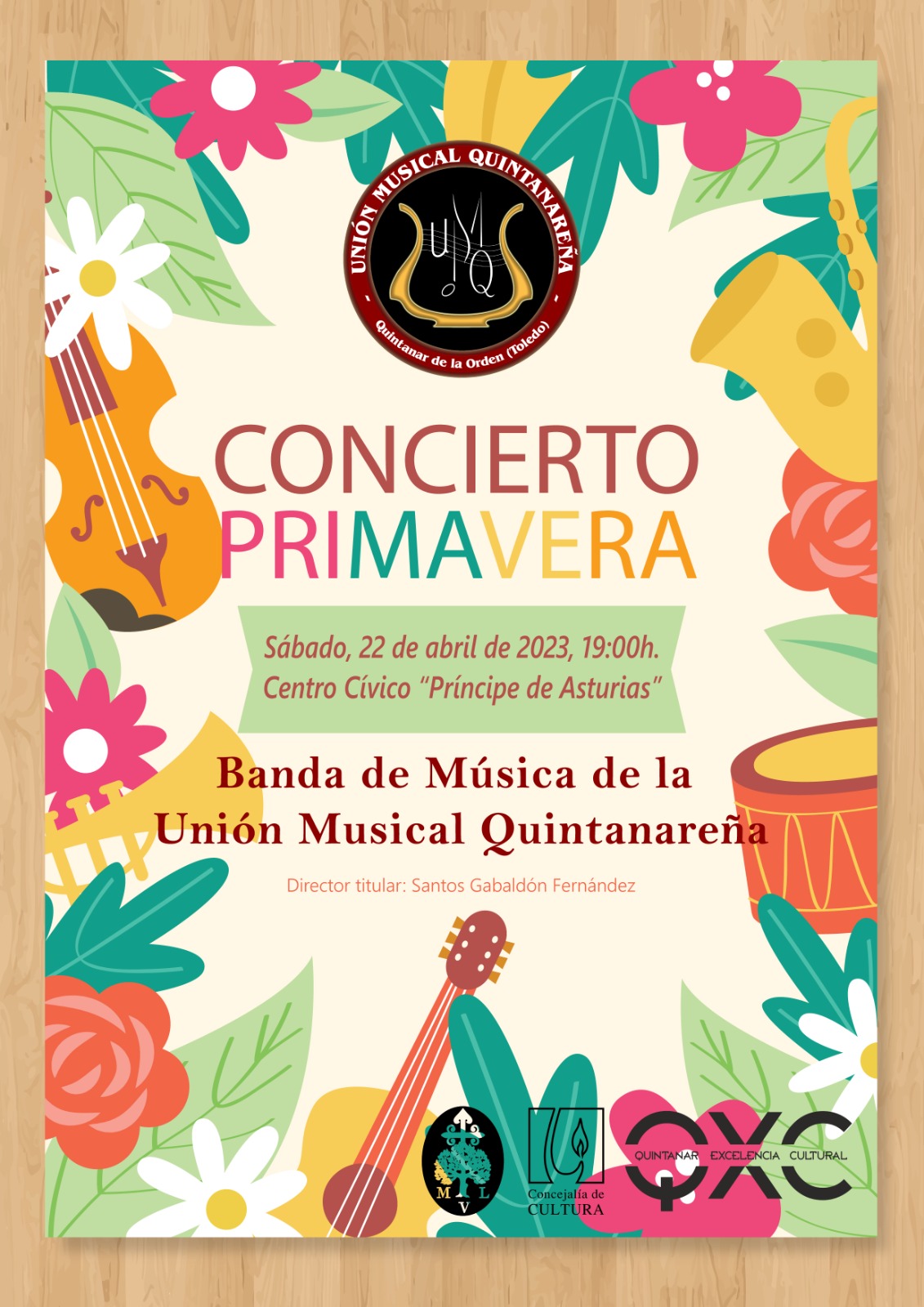 El próximo sábado, 22 de abril a las 19:00 horas en el Centro Cívico "Príncipe de Asturias" de Quintanar de la Orden, la Banda de Música de la Unión Musical Quintanareña inaugura su programación músico-cultural con un concierto denominado "Concierto de Primavera" |