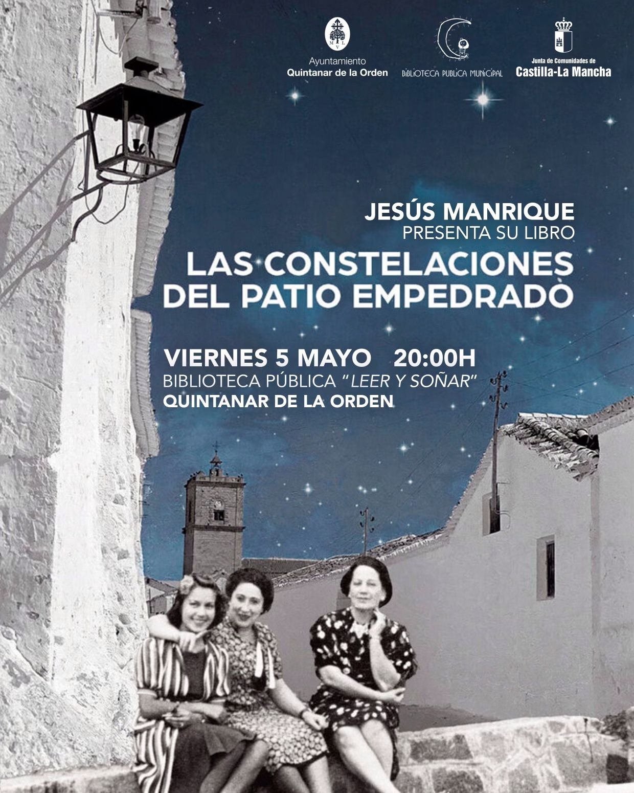 El escritor Jesús Manrique presenta su libro "Las constelaciones del patio empedrado" el viernes 5 de mayo a las 20:00H en la Biblioteca Pública "Leer y Soñar" de Quintanar de la Orden. OS ESPERAMOS !!! |