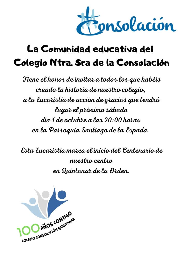 El Colegio Nuestra Señora de la Consolación de Quintanar de la Orden cumple 100 años. Por eso desde el Centro han organizado diferentes actividades que se iniciarán este sábado con una Eucaristía de acción de gracias a las 20.00 horas en la Parroquia. Pero este no será el único acto pues el lunes se realizarán […]