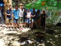 Los cocineros daban lo mejor de sí durante toda la mañana a pesar del calor que desprenden las fogatas, para que las calderetas quedaran especiales algo que consiguieron con creces a juzgar por los comentarios de los comensales que aseguraban que estaban riquísimas.