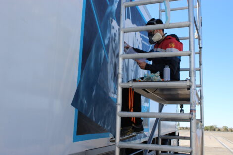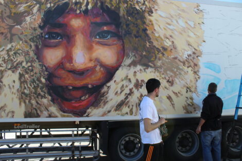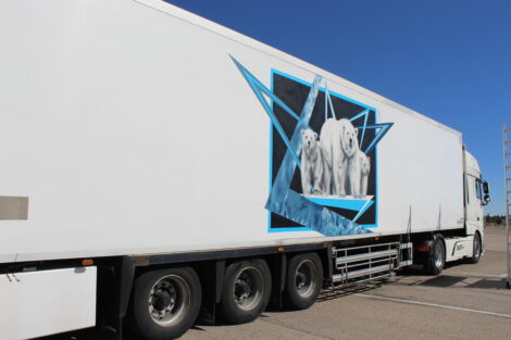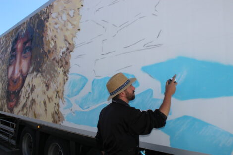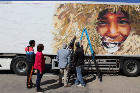 El director de la escuela Franz Campoy explica como sucedió este proyecto y es que cuenta que cuando ve los camiones por la carretera piensa que el espacio en blanco del remolque está “muy mal aprovechado” y, con su iniciativa lo que quiere conseguir es ”mover el arte y llegar a más sitios con la pintura”.