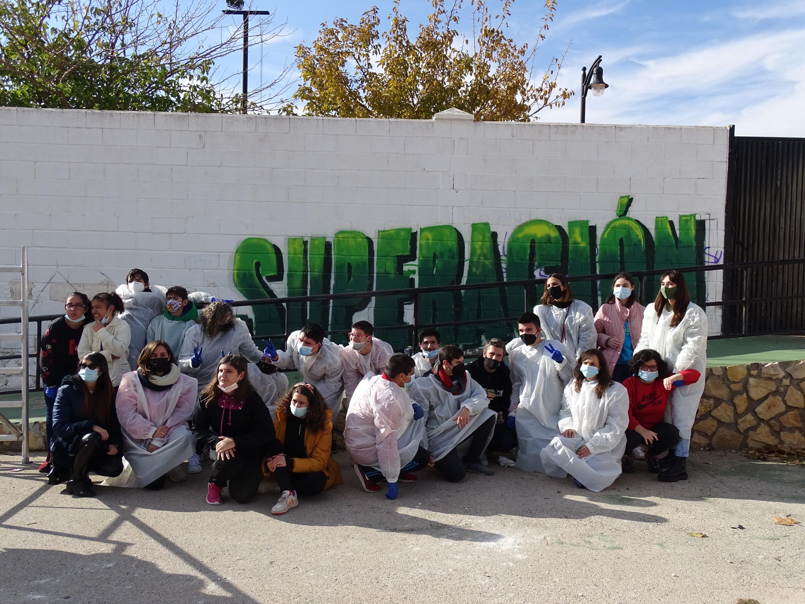 Este miércoles, han llevado a cabo una actividad muy creativa y que dejará plasmado el objetivo de esta semana. Se trata de la creación de un graffiti en una de las paredes de la explanada del recinto ferial. Para desarrollar esta actividad han contado con la ayuda del profesor de la Escuela de Pintura y Arte Urbano, Franz Campoy. Así, este muro contará con la imagen del muñeco Inclusón y la palabra “Superación”. “A pesar de que Asprodiq está a las afueras de Quintanar nosotros queremos estar dentro del pueblo y queremos dejar huella y así lo hemos hecho con este mural”.