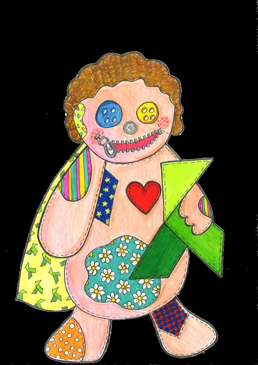 El muñeco está creado con parches que simulan las limitaciones que todo ser humano tiene pero que, sin embargo, permite desarrollar otras capacidades.