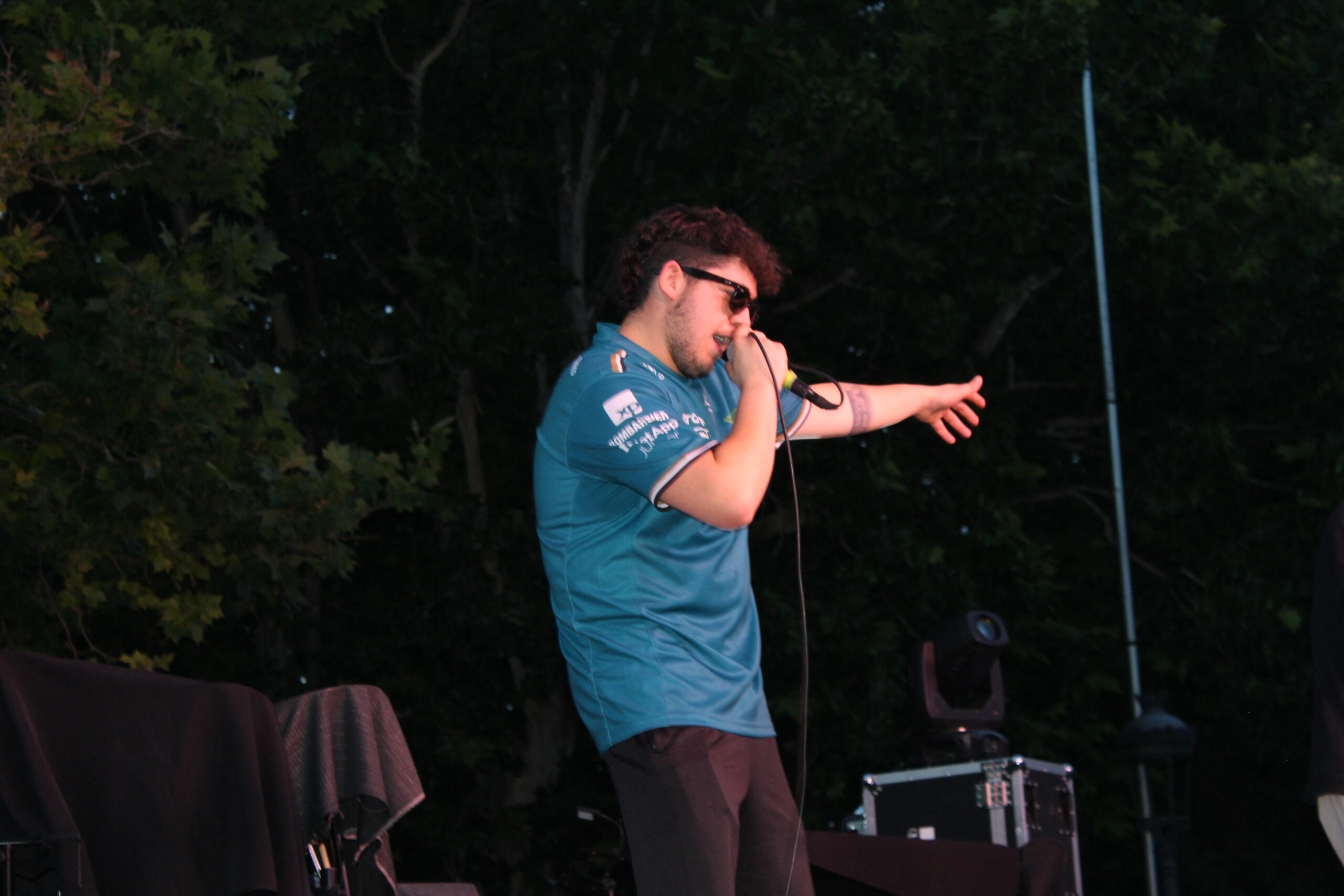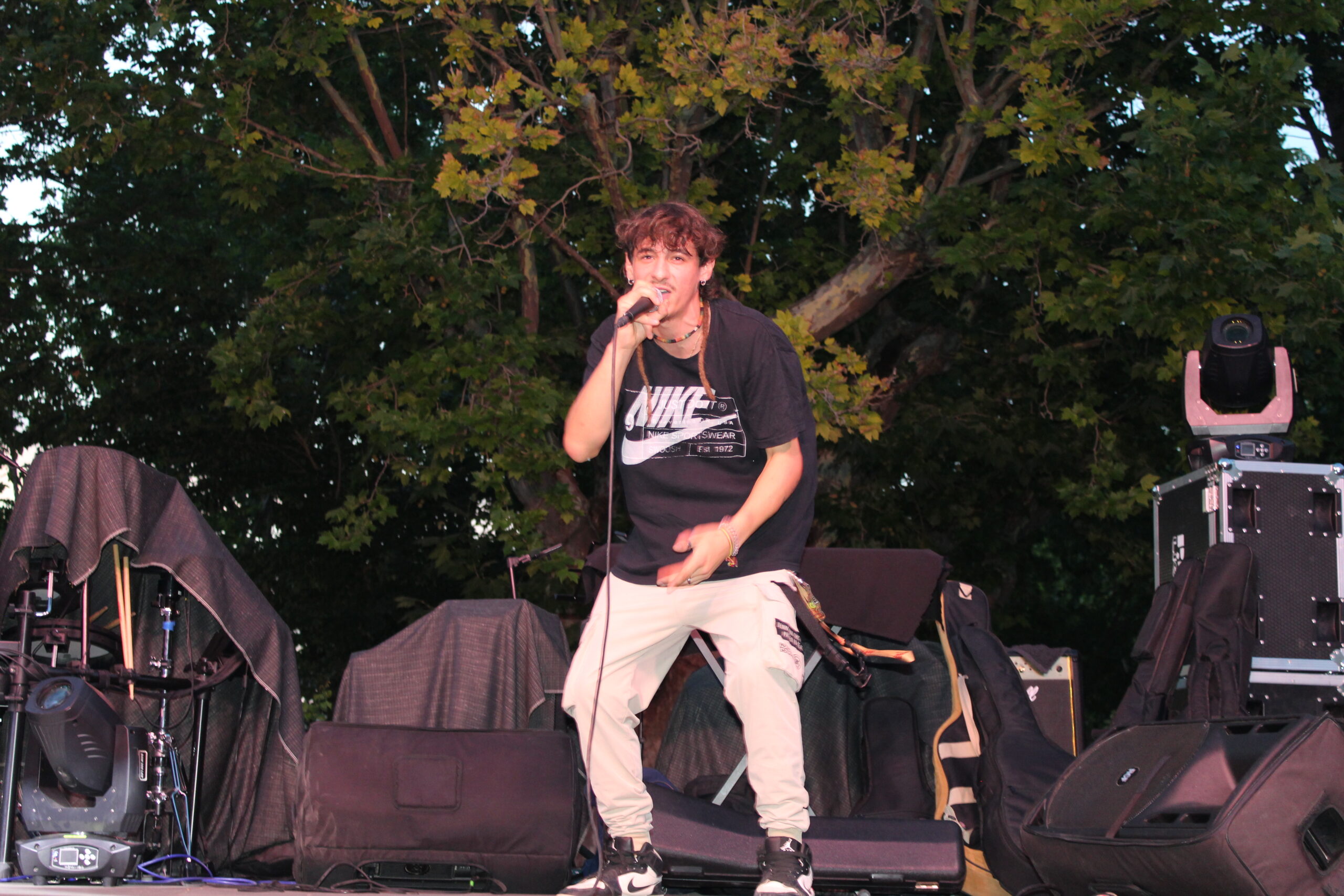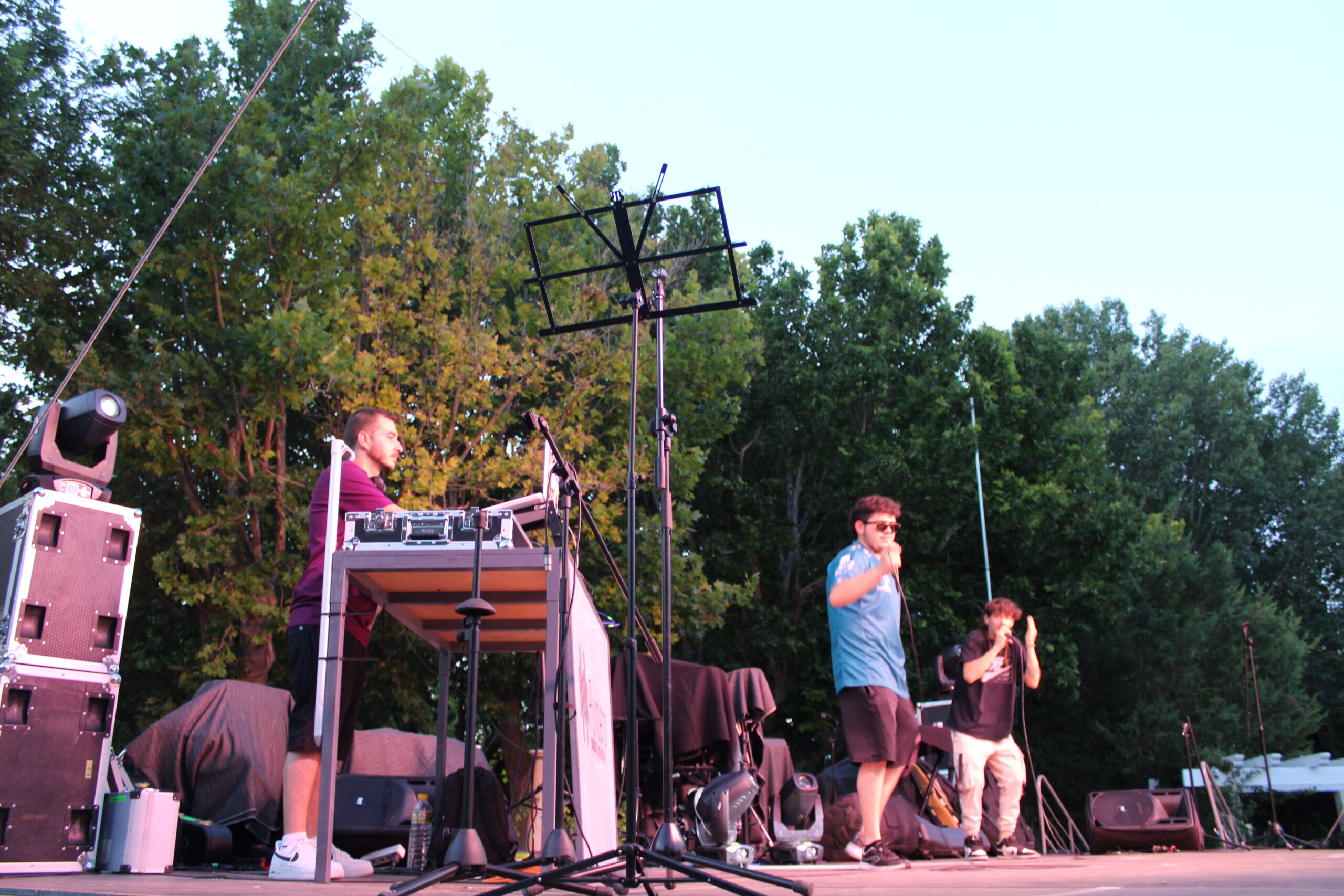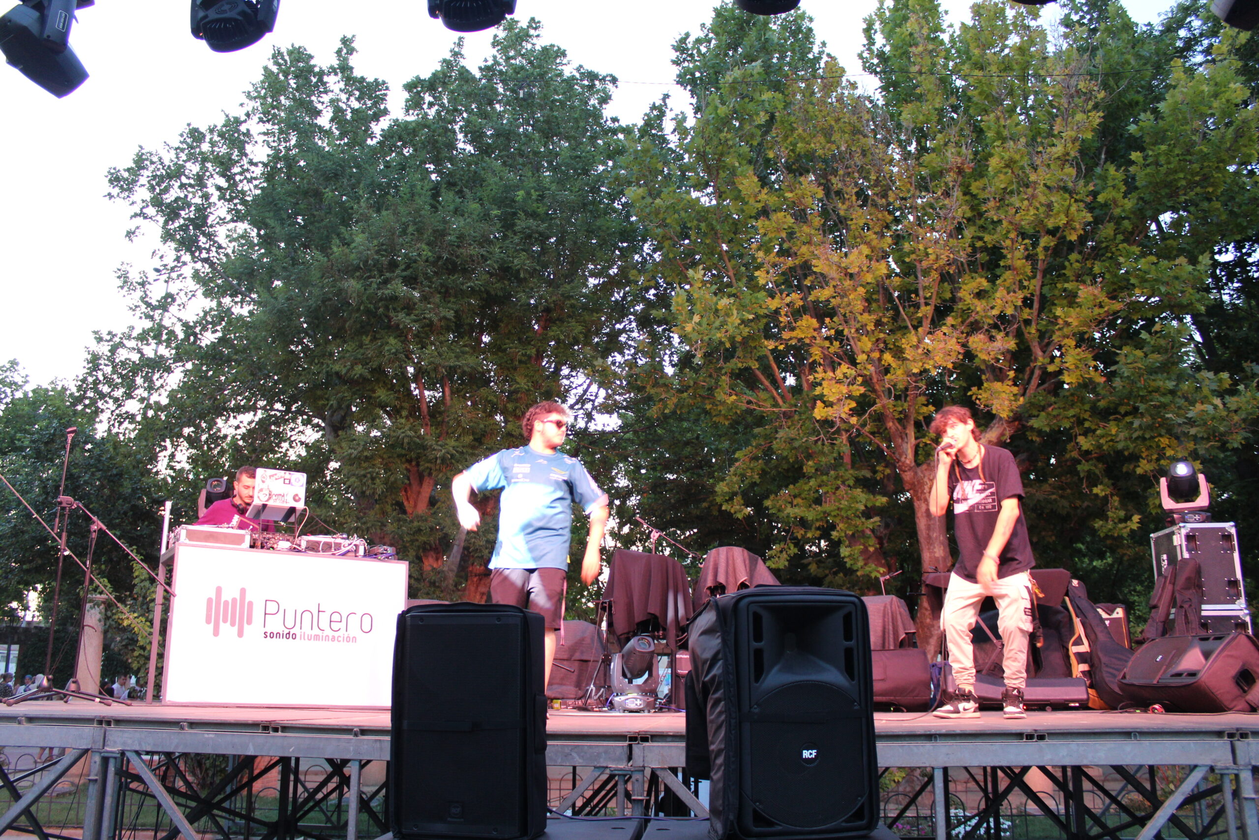 A la entrada de la noche Nexo, Moner y DJ Cachone un grupo de Rap de nuestra localidad realizaba una actuación para todo el público.