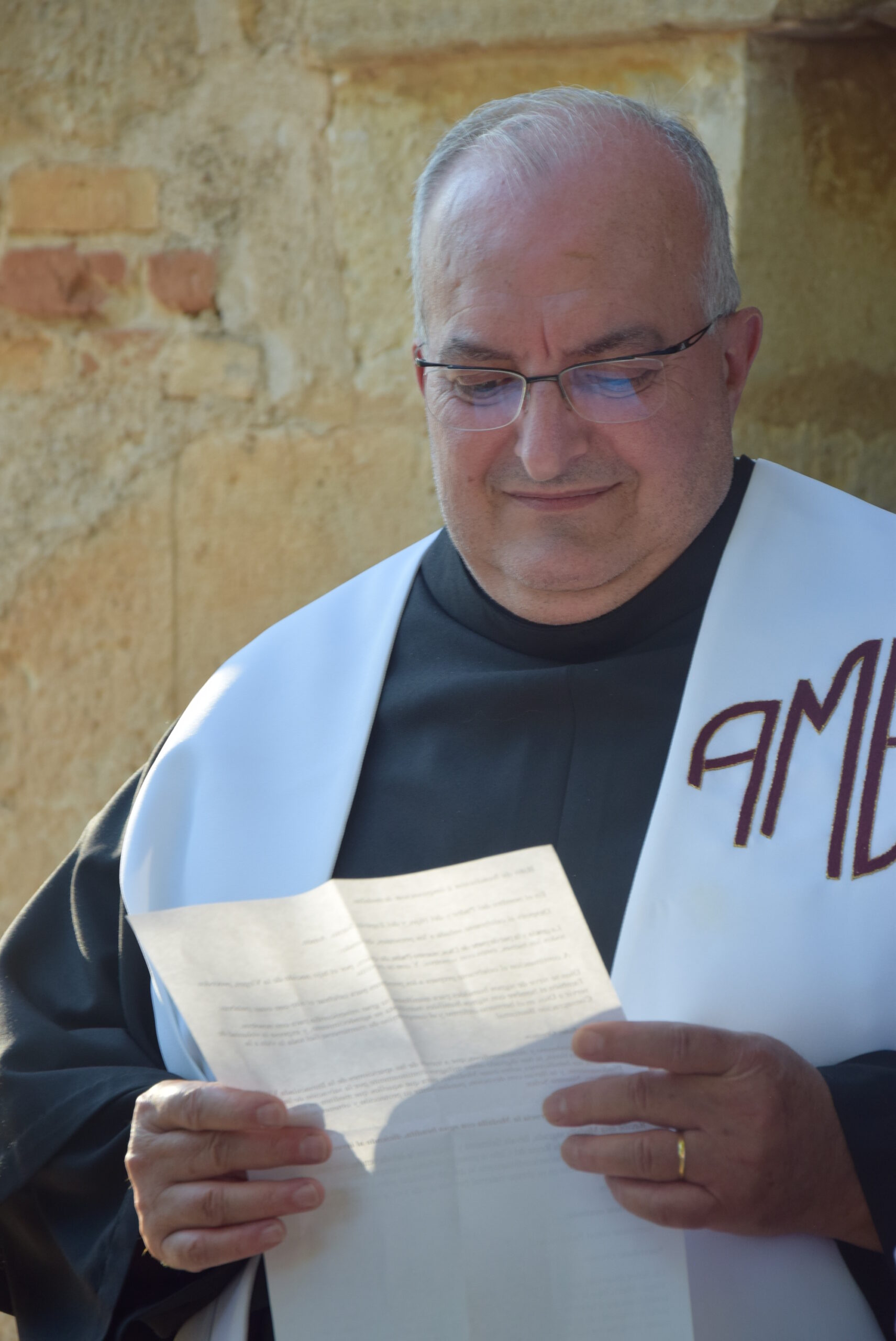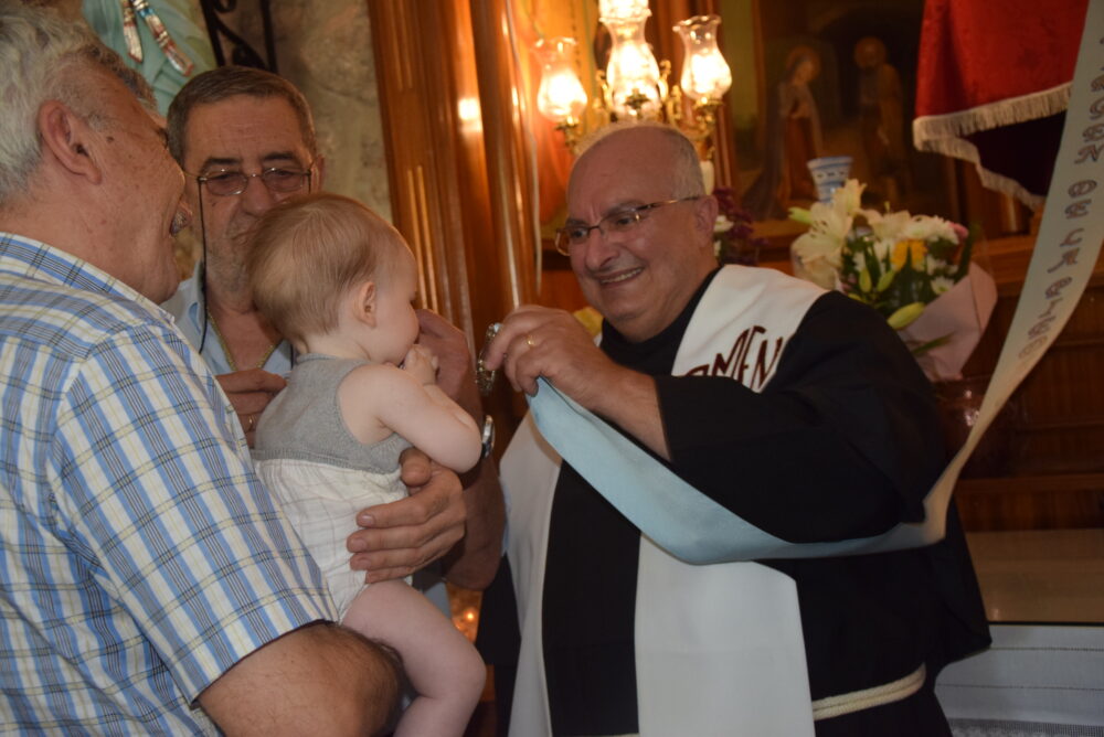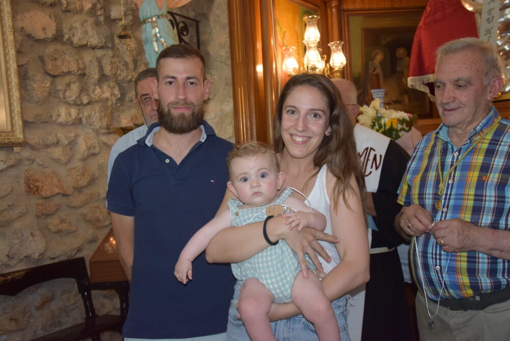 El sacerdote dirigió unas palabras a todos los asistentes y les hizo una bendición general. Después, fueron pasaron a la Ermita uno por uno y el sacerdote los fue bendiciendo. Pasaba a cada niño y niña por la frente una medalla que colgaba con una banda de las manos de la Virgen de la Piedad.