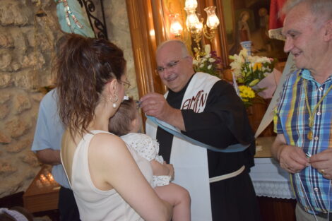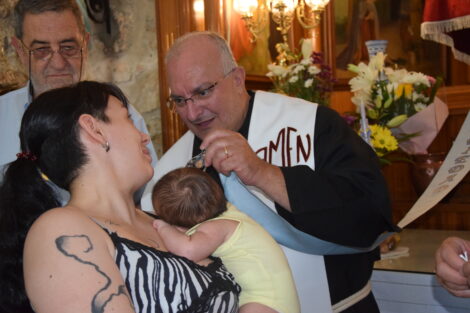 El acto se realiza para los niños y niñas bautizados en el último año. Todas y todos ellos fueron bendecidos en presencia de la patona. La ceremonia fue sencilla y breve para apaciguar la impaciencia de los peques.