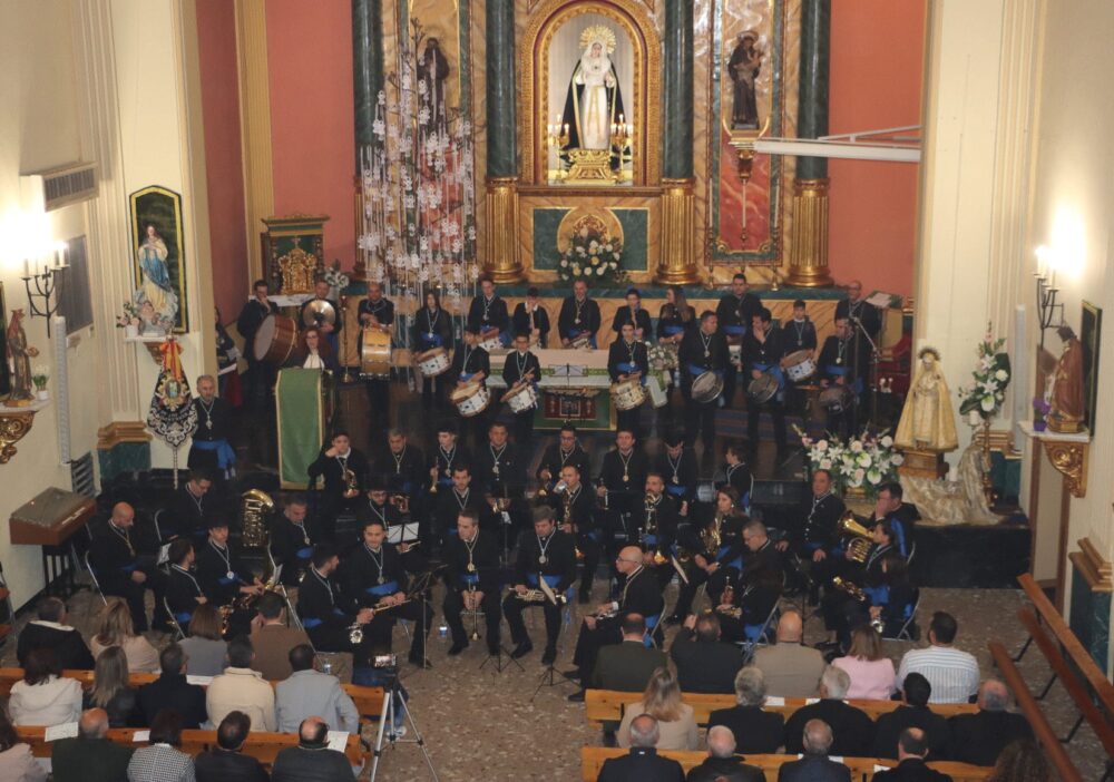 El interior del convento de Nuestra Señora de los Dolores se quedó pequeño para acoger a los numerosos vecinos y amantes de la música cofrade que no quisieron perderse la cita musical.