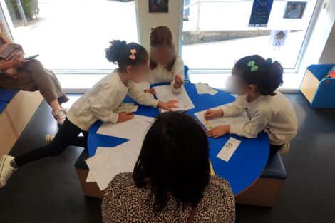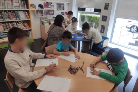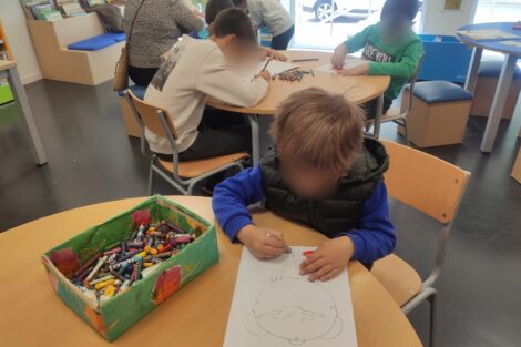 Al finalizar el cuentacuentos, los niños y niñas realizaron una actividad dibujando y pintando dibujos relacionados con los tres cuentos. Un tarro en el que debían poner la cosas de mayor a menor importancia para invertir el tiempo. Un reloj al que debían ponerle las horas y un lobo que debían colorear a estilo libre.