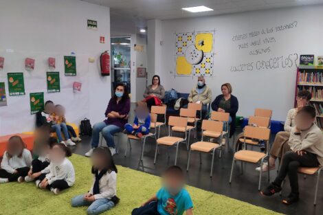 Los niños muy integrados en los cuentos participaban en la actividad haciendo preguntas a la escritora e interesándose por las historias.