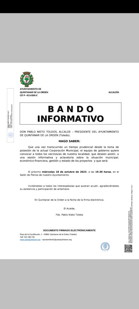El alcalde informará a los vecinos de la situación municipal y proyectos en curso