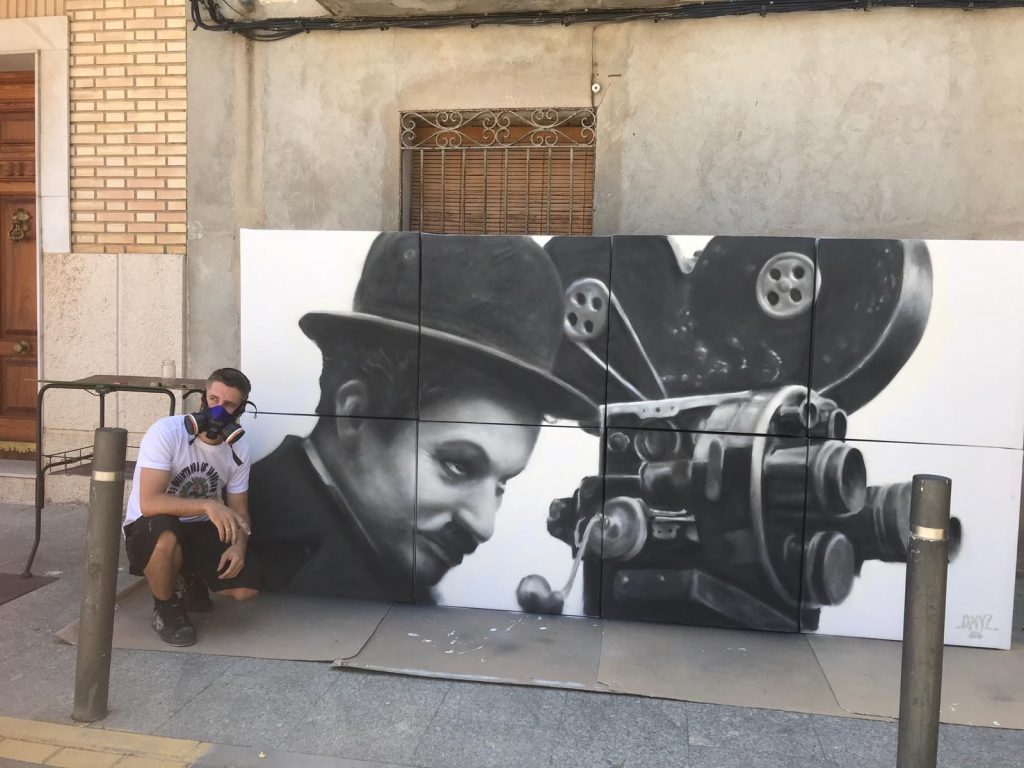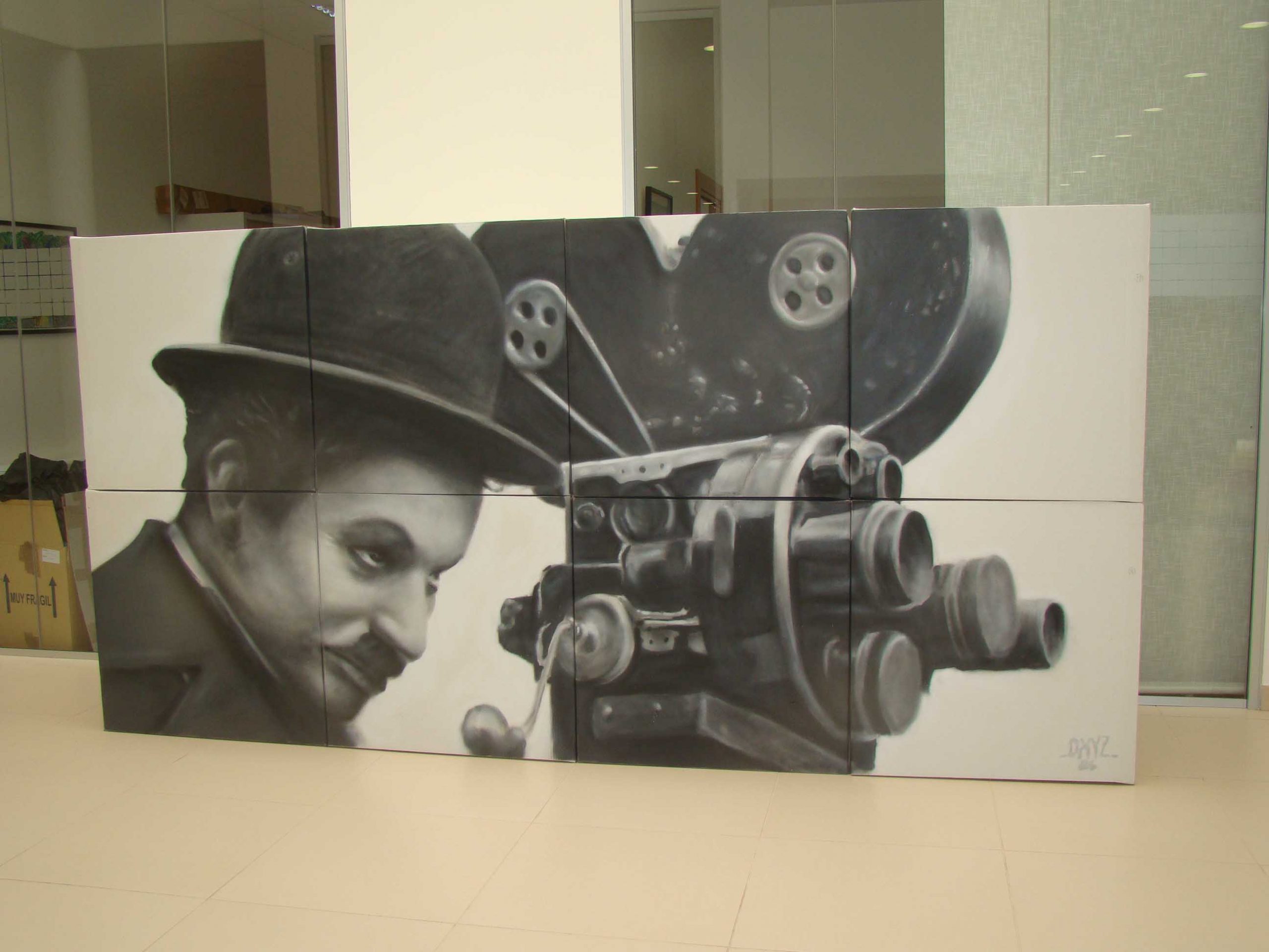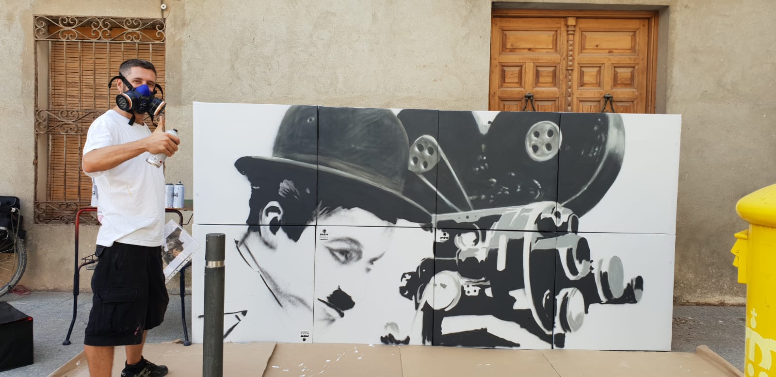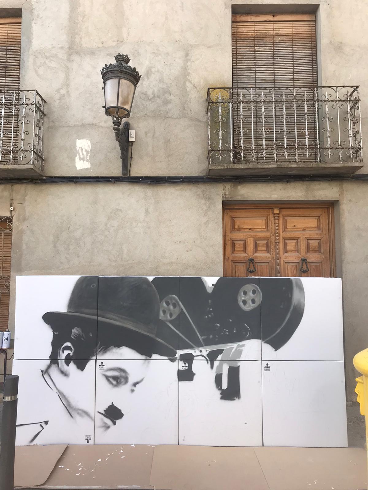 Según explicaba el propio Franz Campoy ha querido representar a Charles Chaplin delante o detrás de una cámara. “Siempre tenemos la imagen de ese personaje que hizo reír a la gente y en la imagen que he pintado vemos cómo detrás de ese personaje había una persona que cuidaba mucho su trabajo”. Campoy afirmaba que para él Chaplin es una persona que revolucionó el mundo tanto por su trabajo como por su vida. “Películas como ‘El gran dictador’ o ‘Tiempos modernos’ para mí marcaron un antes y un después de mi época juvenil con unos claros mensajes que pueden traerse también a la actualidad”, aseveraba.