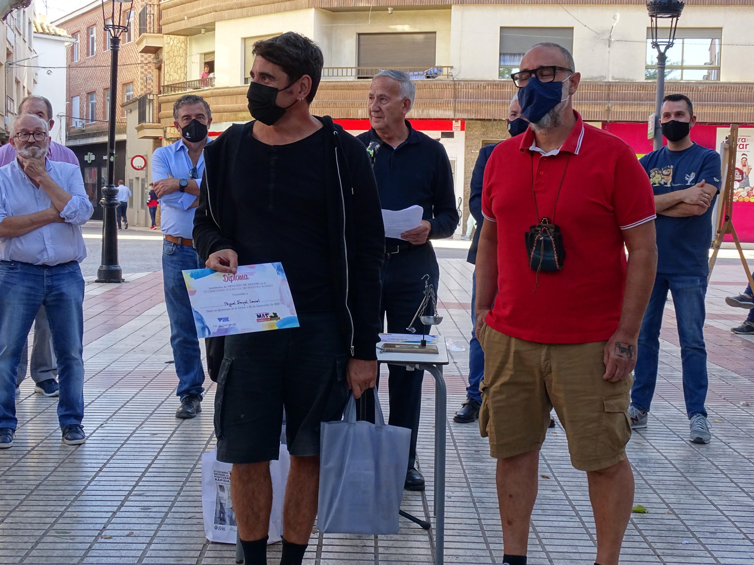 Por último dirigió unas palabras, el organizador del Certamen, Luis Añover, quien agradeció el trabajo de los artistas, la labor del jurado y la presencia del público. Añover, destacaba la calidad de las obras presentadas al concurso y apuntaba que las puntuaciones habían quedado muy ajustadas unas de otras por lo que había sido difícil seleccionar las cinco obras ganadoras. Por otro lado, Añover, indicaba que en esta edición han sido 17 los artistas participantes, un número importante ya que la pandemia obligó a cancelar numerosos certámenes que ahora los Ayuntamientos están retomando y son muchos los que se celebran al mismo tiempo en diferentes partes de España. “Gracias a todos por vuestro arte, vuestro empeño y vuestra participación”, concluía Añover.