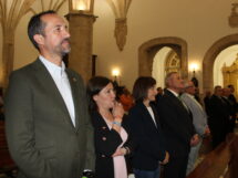 Los estandartes de todas las cofradías de Quintanar rodeaban el templo parroquial. Y en el acto estaban las Religiosas de la localidad, representantes de las 13 Cofradías de Semana Santa, de las Cofradías de Gloria y decenas de vecinos y vecinas de la localidad.