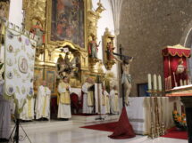 Ante de finalizar la misa, el presidente de la Junta General de Cofradías, Santiago Añover, dirigía unas palabras a los asistentes agradeciendo la presencia “a todas las personas presentes, ausentes y a los que ya no están” por haber formado parte en algún momento de estos cincuenta años de Junta de Cofradías de Quintanar. Animaba a seguir manteniendo en lo más alto la semana santa “con fe, trabajo y unión entre todos”.