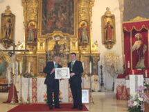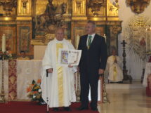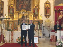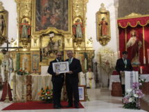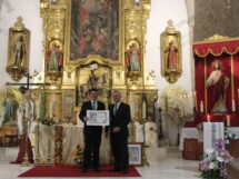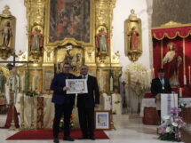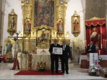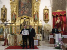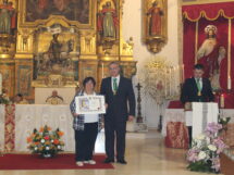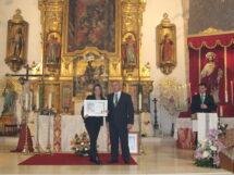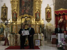 Antes de finalizar el acto, desde la Junta de Cofradía tuvieron un detalle con las autoridades municipales y eclesiásticas allí presentes, además de con cada una de las cofradías, miembros de la junta y colaboradores habituales de la misma.