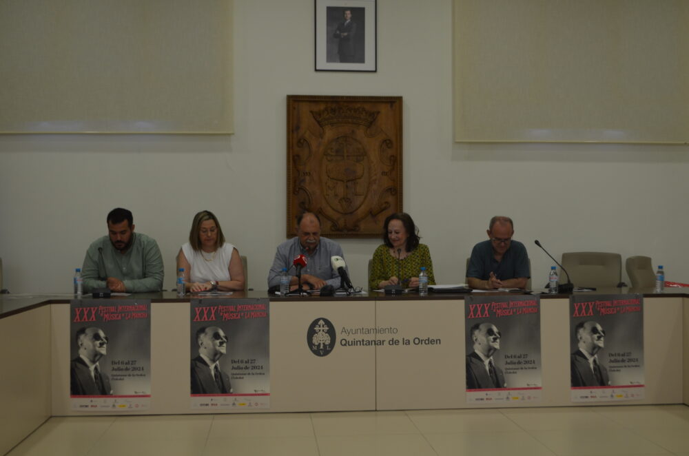 Este viernes 21 de junio se ha celebrado en el Salón de Plenos del Ayuntamiento de Quintanar de la Orden la presentación de la XXX Edición del Festival Internacional de Música de la Mancha. Entre los presentes se encontraba el Alcalde D. Pablo Nieto Toldos y varios miembros de la Corporación Municipal, además de la organización del Festival.