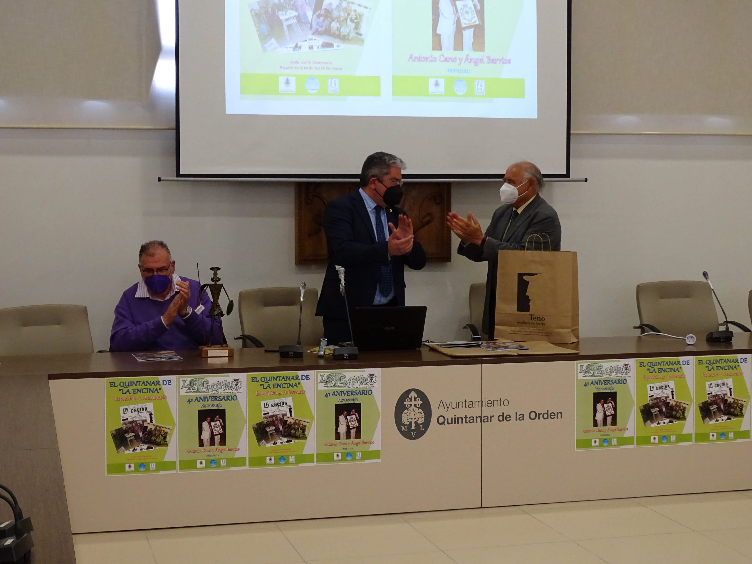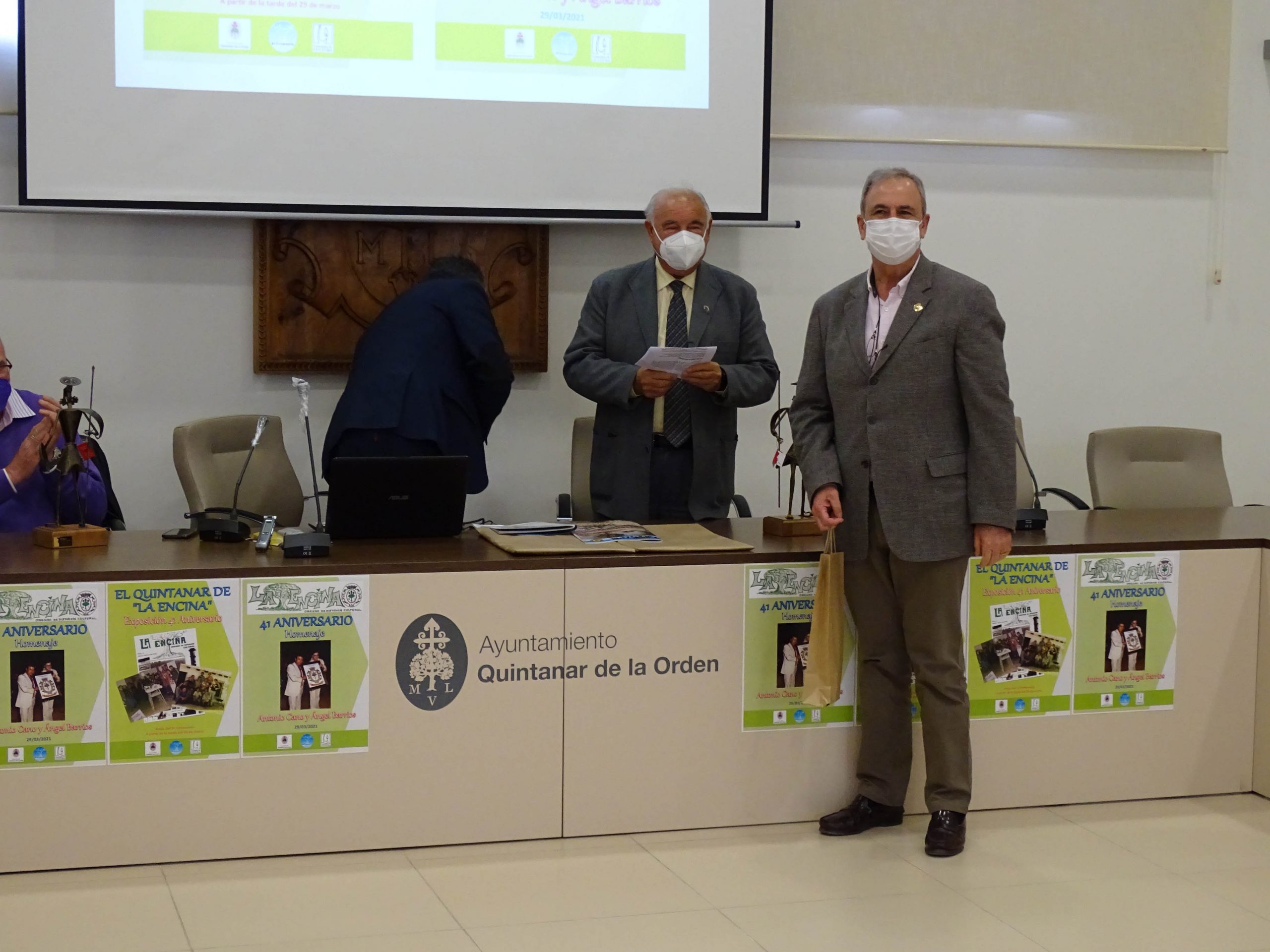 Cerraba el acto el alcalde, Juan Carlos Navalón, quien definía la Revista “La Encina” como una de las instituciones más importantes de la Historia de la localidad.  “Su trayectoria tan longeva se debe al esfuerzo y a la perseverancia de un gran equipo de personas entre las que destacan las figuras de Antonio Cano y Ángel Barrios, dos pilares fundamentales de esta revista”.