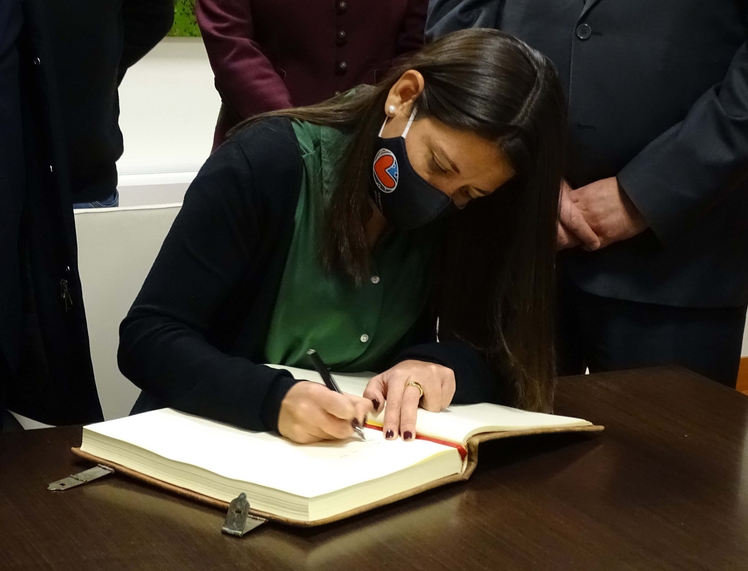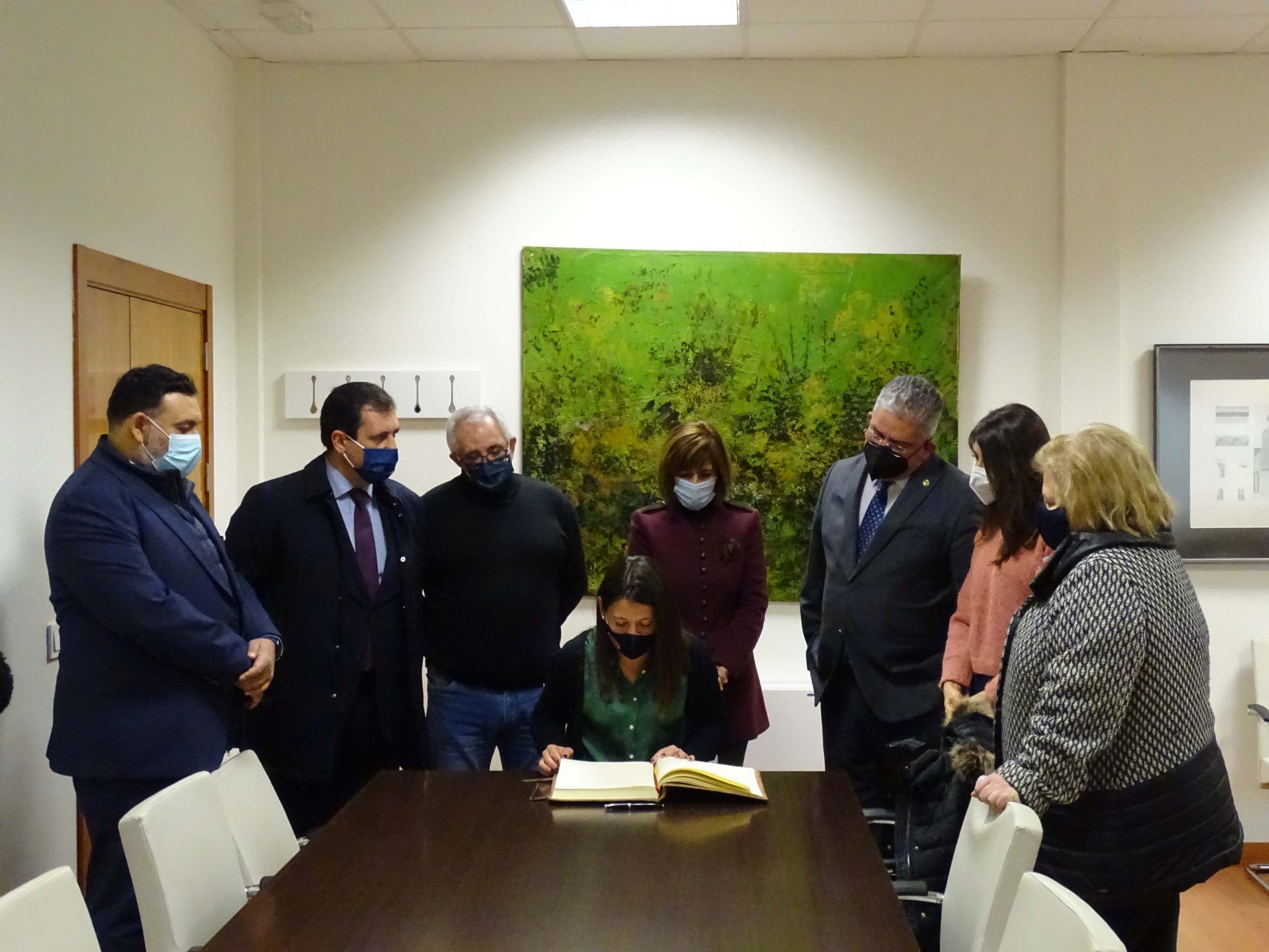 Antes, también visitó el Ayuntamiento donde dejó constancia de su visita en el libro de firmas.