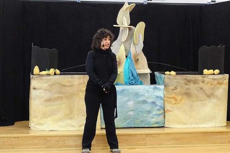 La directora de la Biblioteca, Manuela Sevilla, daba la bienvenida a los pequeños y pequeñas que acudían acompañados del profesorado y algunas madres y padres y deseaba que disfrutaran del espectáculo “Soliluna”.