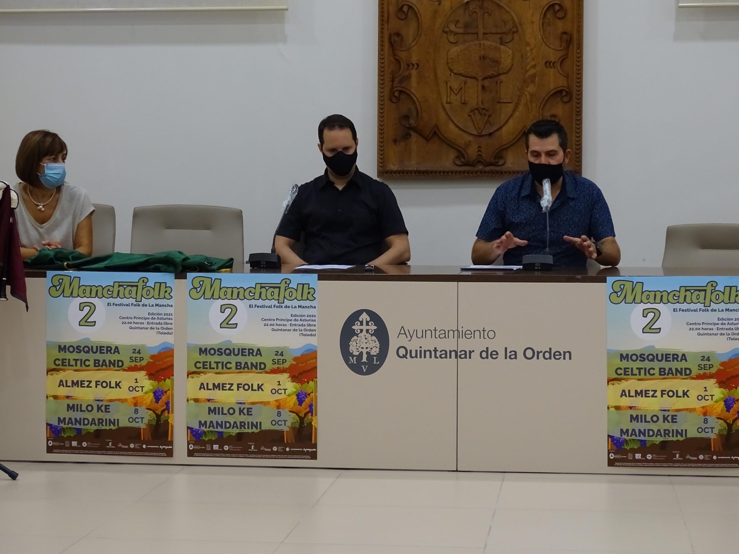 El Salón de Plenos del Ayuntamiento de Quintanar de la Orden acogía la tarde del jueves, 9 de septiembre, la presentación de la segunda edición del Festival Manchafolk con la presencia del concejal de Cultura, José Ángel Escudero; la concejala de Festejos, Ana María Serrano; y el director técnico del Festival, Fernando Mosquera.