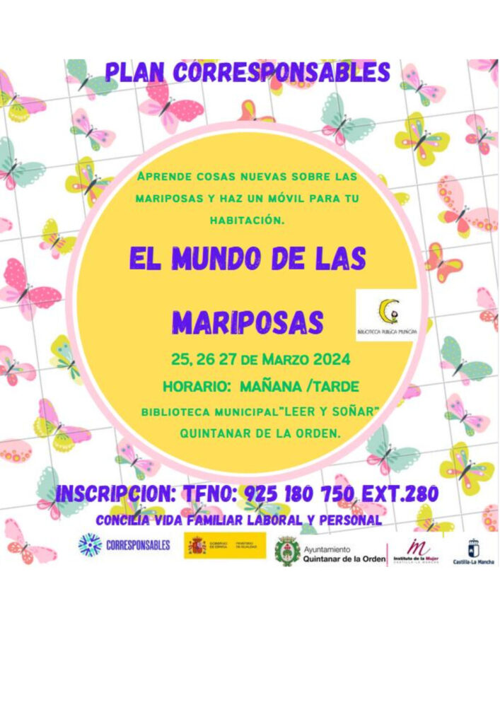 Este curso irá a cargo del Plan Corresponsables, con el fin de aprender cosas nuevas sobre las mariposas y conciliar la vida familiar, laboral y personal.