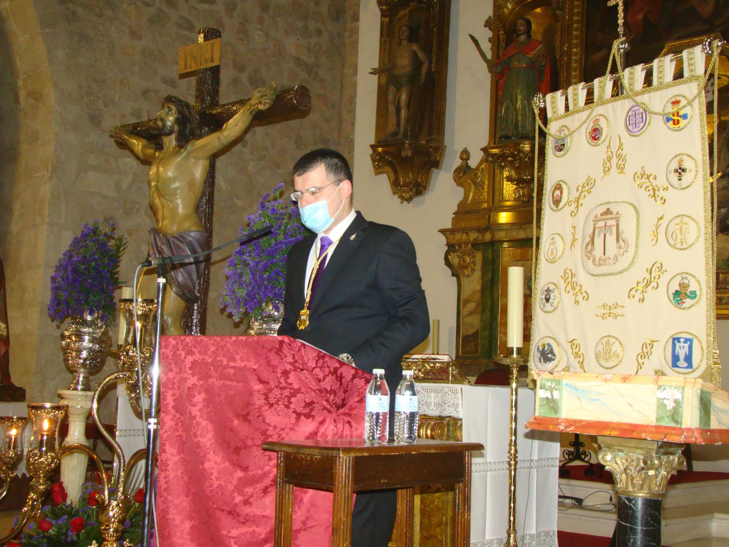 Abría el acto el presidente de la Junta de Cofradías, Santiago Añover, que señalaba que, a pesar de ser una Semana Santa muy distinta a la del pasado año, en la que contarán con la celebración de algunos actos faltará el mayor esplendor como son las procesiones. No obstante resaltaba que no hay que olvidar que se celebra la Pasión, Muerte y Resurrección de Jesucristo. “Por eso, decía, os invito a participar en los actos litúrgicos para llamar a vivir la fraternidad y hacer vida real el mandamiento nuevo del amor”.  “Debemos aprovechar la ocasión que nos brindan estos días de Semana Santa para encontrarnos con las personas que nos rodean y que nuestra actitud renovada les invite a encontrarse con Cristo Resucitado”.