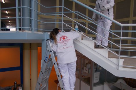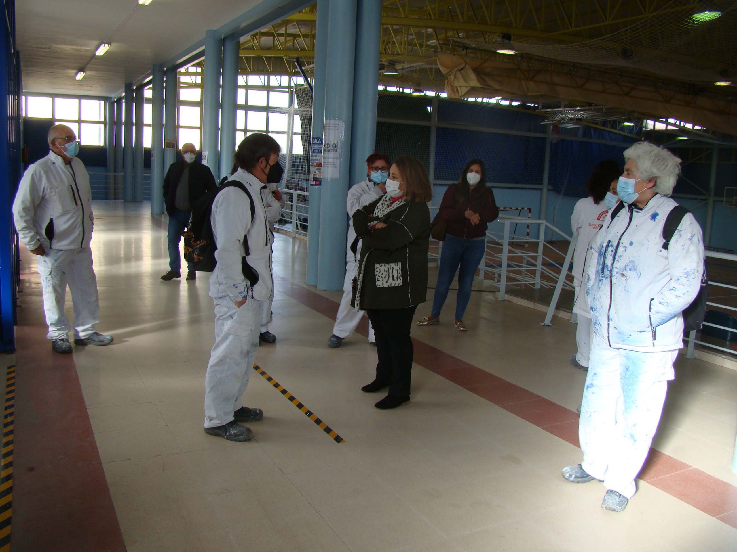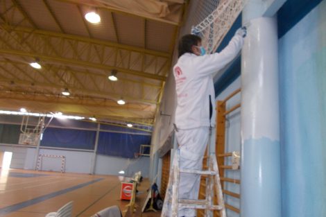 La Coordinadora y el Monitor explicaban que tienen otras dos obras iniciadas, una en el Polideportivo Fred Galiana y otra en el Colegio Rosell donde se está trabajando en las paredes, lijados y pintura.