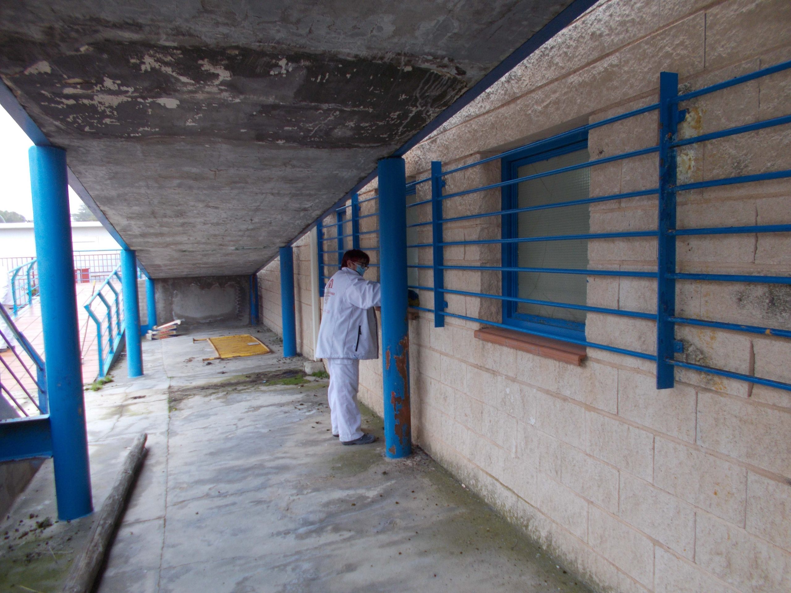 Concretamente, los trabajos que han desarrollado en las últimas semanas se han realizado en el interior y exterior del Pabellón de Colón tanto en las paredes como como en columnas, brandas y cerramientos que se encontraban en mal estado.