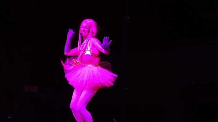 Sobre el escenario, la quintanareña Ariadna Ortiz, se transformaba en la conocida Luli Pampín para hacer disfrutar a los niños y niñas que se congregaban a los pies del escenario para bailar las conocidas canciones de la artista musical. Temas como “Lávate las manos”, “Congelado”, “Juguemos en el bosque” o “Boca Sana” entre otros muchos sonaban y hacían bailar a los pequeños y pequeñas que también han tenido oportunidad de saludar al personaje.