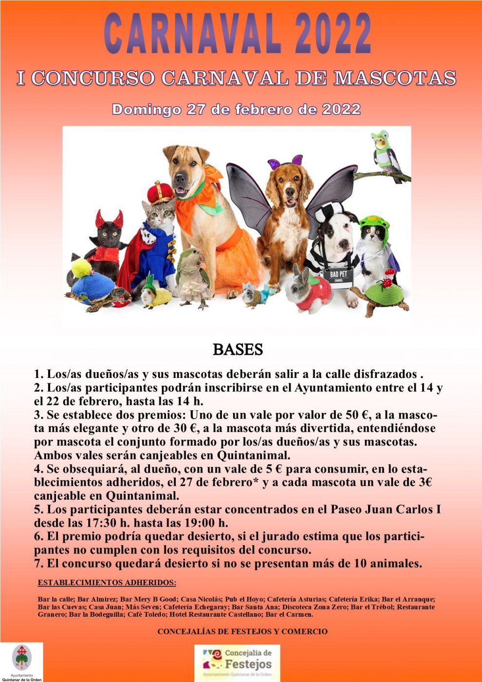 Con motivo de las fiestas de Carnaval, la Concejalía de Festejos ha organizado el I Concurso de Carnaval de Mascotas que se celebrará el próximo 27 de febrero.