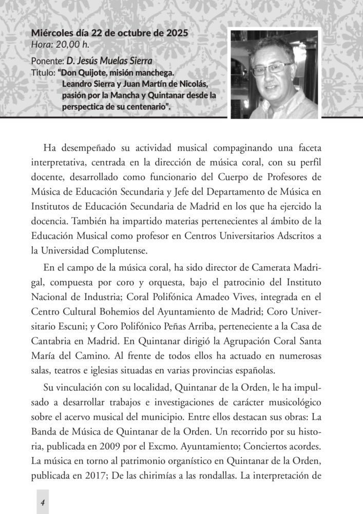 Conferencia : “Don Quijote, misión manchega. Leandro Sierra y Juan Martín de Nicolás, pasión por la Mancha y Quintanar desde la perspectiva de su centenario”