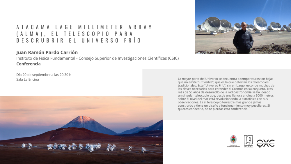 El próximo viernes 20 de septiembre se celebrará, en la Sala La Encina de Quintanar de la Orden, la Conferencia a cargo de Juan Ramón Pardo Carrión, del Instituto de Física Fundamental del Consejo Superior de Investigaciones Científicas (CSIC).