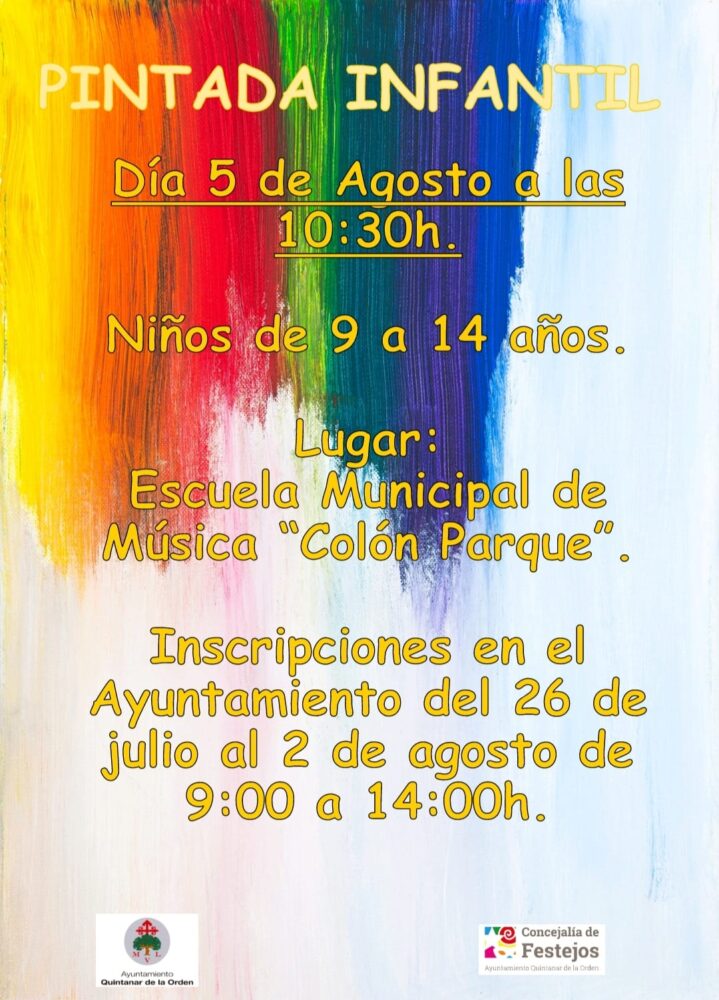 PINTADA INFANTIL para niños de 9 a 14 años 🤗 el día 5 de agosto a las 10:30h en la Escuela Municipal de Música “Colón Parque”. Las inscripciones‼️ serán en el Ayuntamiento del 26 de julio al 2 de agosto de 9 a 14h 🧑🎨🖌️