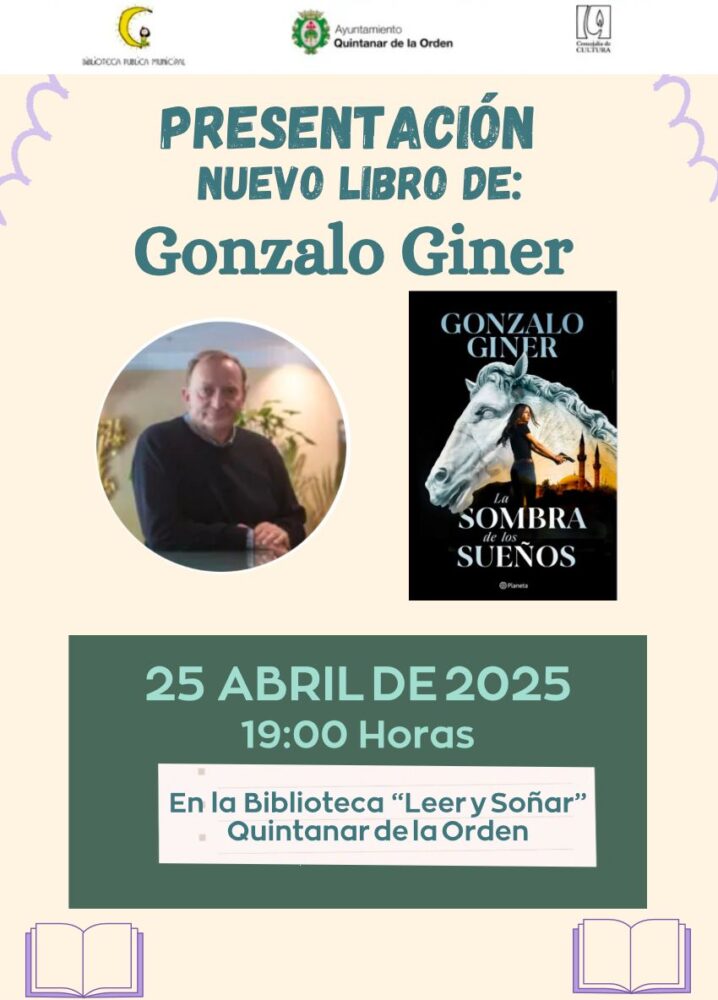 El próximo viernes 25 de abril se celebrará la presentación del nuevo libro de Gonzalo Giner, “La Sombra de los Sueños”, a las 19:00h en la Biblioteca Pública, dentro de las actividades del II Encuentro Literario Internacional.