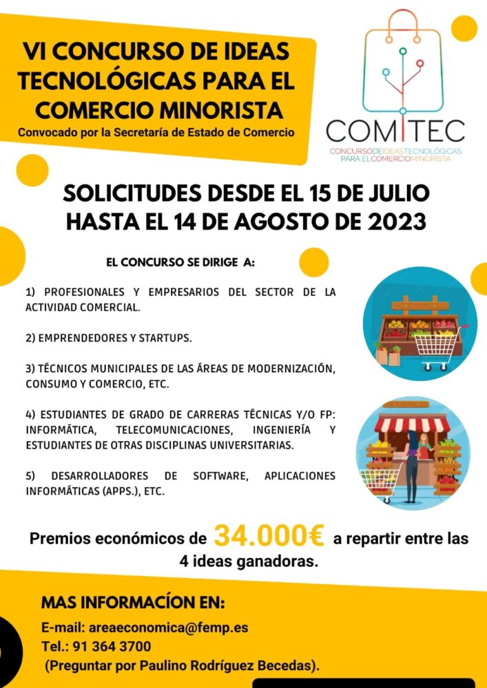Desde el Ayuntamiento de Quintanar de la Orden, os invitamos a participar en el VI CONCURSO DE IDEAS TECNOLOGICAS PARA EL COMERCIO MINORISTA, convocado por la secretaría de estado del Comercio el premio asciende a 34.000€ a repartir entre las cuatro ideas ganadoras. Las solicitudes se pueden presentar del 15 de julio al 14 de agosto ‼️