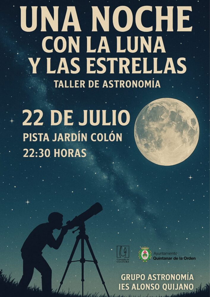 El próximo martes 22 de julio se celebrará en Quintanar de la Orden la actividad “Una Noche con la Luna y las Estrellas”, a cargo del taller de Astronomía del IES Antonio Quijano de la localidad.