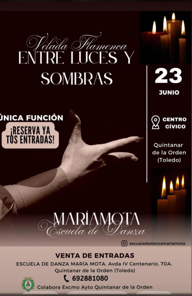 El próximo lunes 23 de junio se celebrará la Velada Flamenca “Entre Luces y Sombras” una única función a cargo de la Escuela de Danza María Mota en el Centro Cívico “Príncipe de Asturias”.