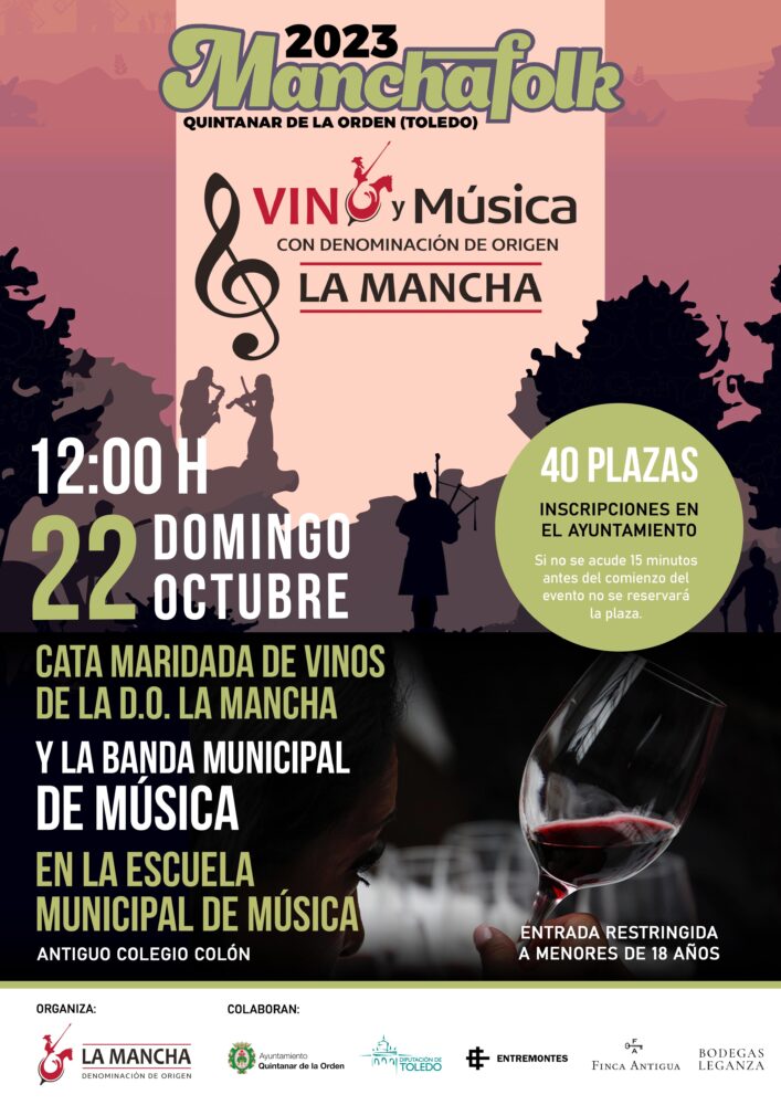 El domingo 22 de octubre a partir de las 12:00 horas habrá una cata maridada de vinos de la D.O. La Mancha junto con la Banda Municipal de Música en la Escuela Municipal de Música. Hay 40 plazas y las inscripciones se realizarán en el Ayuntamiento de Quintanar de la Orden.
