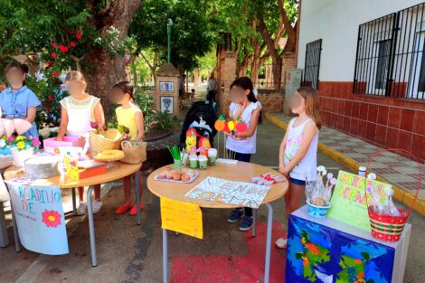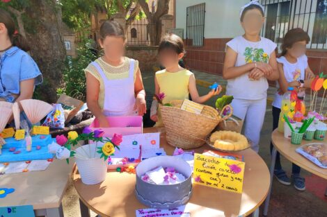 Cada niño podía aportar el producto que quisiera. El mercadillo era de estilo libre por lo tanto, había un sinfín de variedad. Desde comida, bebida, hasta abanicos, flores, ambientadores, pulseras, pasando por conchas, libros hasta llegar a detalles con mensajes por el día de la madre. Todo ello acompañado de poesía, caligrama y haikus ya que este tipo de lectura es muy importante para que los niños conozcan a otros autores y aumenten su cultura.