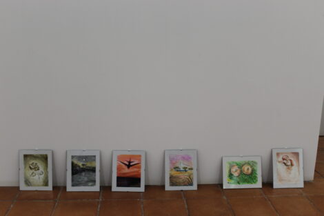 La mayoría de los cuadros son pintados, aunque en la sala hay un rincón para algunas fotos.