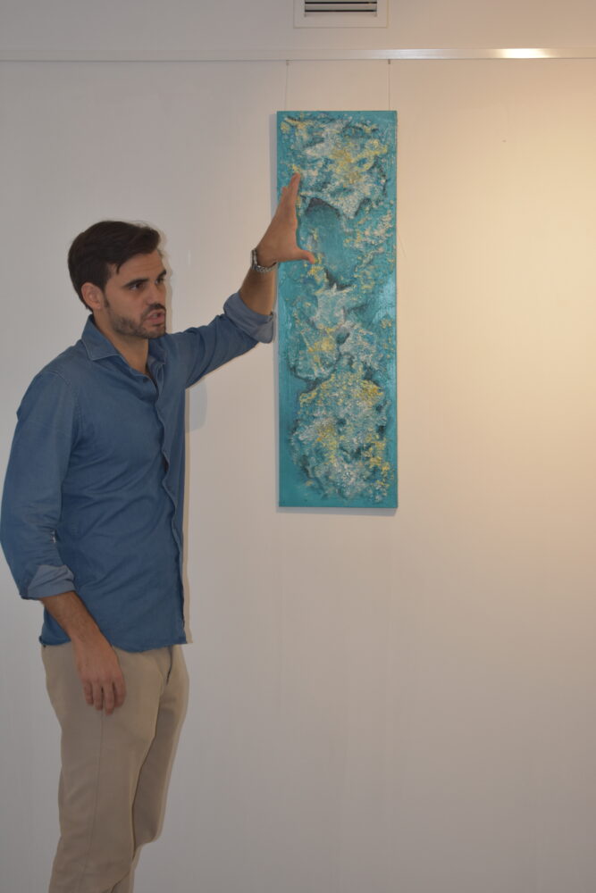 En las diferentes visitas el artista explicó tanto los materiales utilizados en cada obra como la técnica aplicada, pues la obra expuesta en la localidad se puede dividir en varias partes. La primera en que las líneas geométricas son las protagonistas, la segunda donde los animales y el reducir su esencia a una línea cautiva a los asistentes y la tercera, la cual evoca una de las cosas que más gusta al autor, la playa y el mar. Un juego de sensaciones y una forma de evocar.
