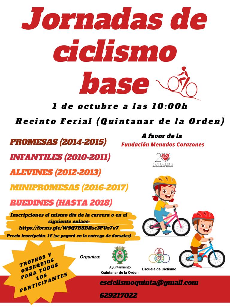 Este domingo 1 de octubre a las 10:00 horas en el Recinto Ferial de Quintanar de la Orden se celebra las jornadas de ciclismo base.