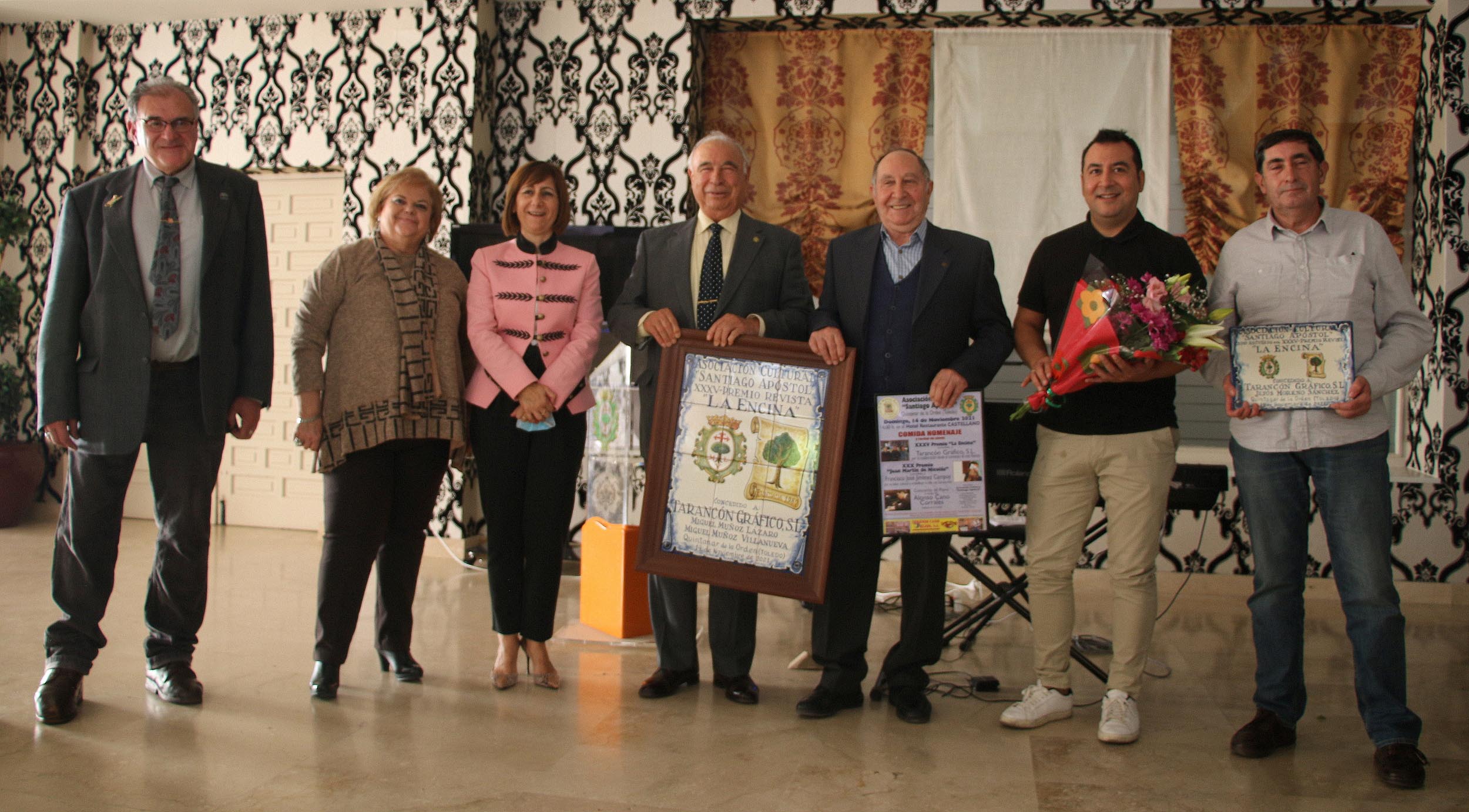 El presidente de la Asociación Santiago Apóstol, Antonio Cano que estuvo acompañado en el acto por el director de la Revista la Encina, Ángel Barrios; y concejalas del equipo de Gobierno Municipal, hacía entrega de un obsequio a los premiados y les la labor que realizan y les animaba a continuar con su cometido muchos años más.