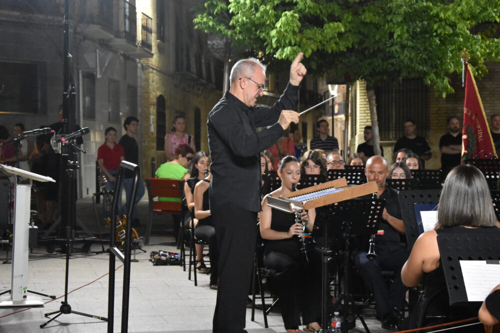 Tras interpretar “Mecano Sinfónico” con arreglos de Azalea Tormo, la Banda dirigida por D. Sebastián Heras Romero ha finalizado la emotiva velada con “La Boda de Luis Alfonso” de Geronimo Giménez, que ha puesto al público en pie con una gran ovación que ha provocado la interpretación de un bis, el Pasodoble “El Tío Caniyitas”, poniendo así el broche final al Concierto de Pre – feria 2025 y al homenaje a la figura cultural de Juan Martín de Nicolás.