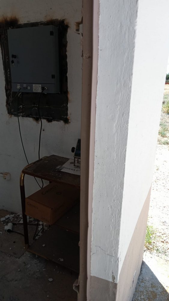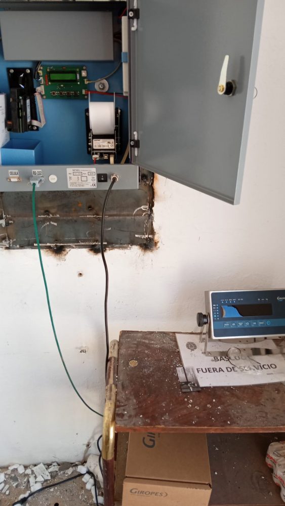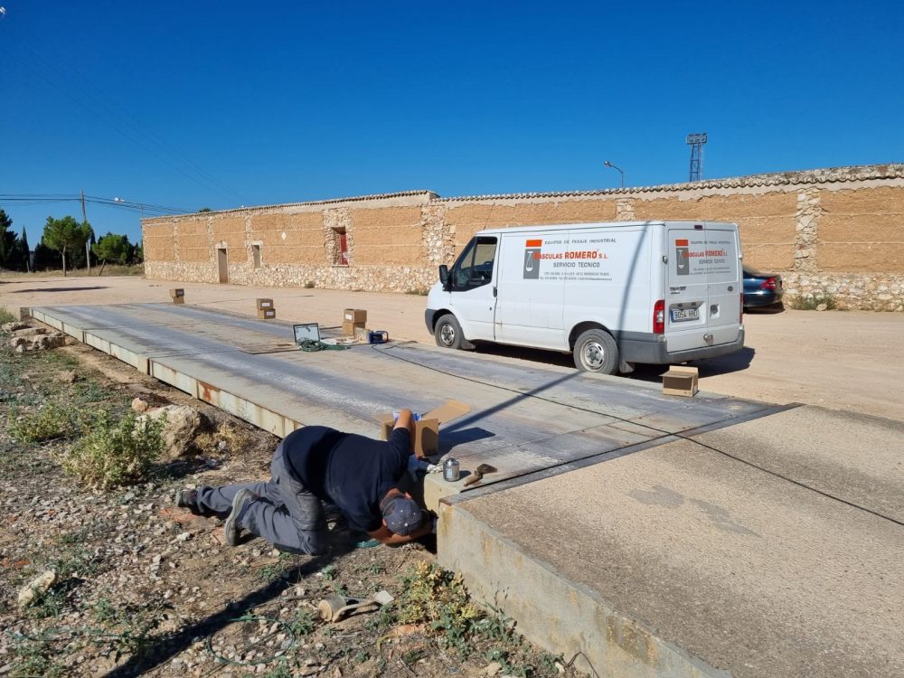 La empresa encargada de arreglar la báscula llevó a cabo el desmontaje de los componentes electrónicos, concretamente los sensores y el monedero de la báscula puente por estar quemados. Se han instalado 8 sensores nuevos y un nuevo equipo de pesaje con.