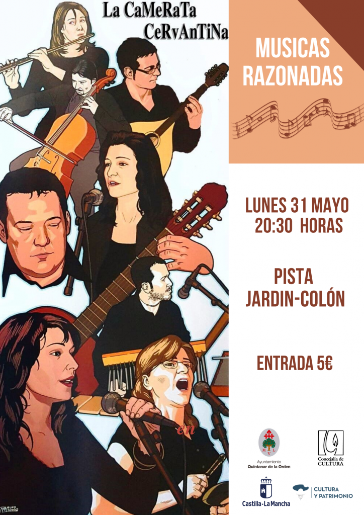 El próximo lunes, 31 de mayo, festividad de Castilla -La Mancha tendrá lugar un concierto de Músicas Razonadas de La Camerata Cervantina en la Pista Jardín-Colón a las 20.30 horas.