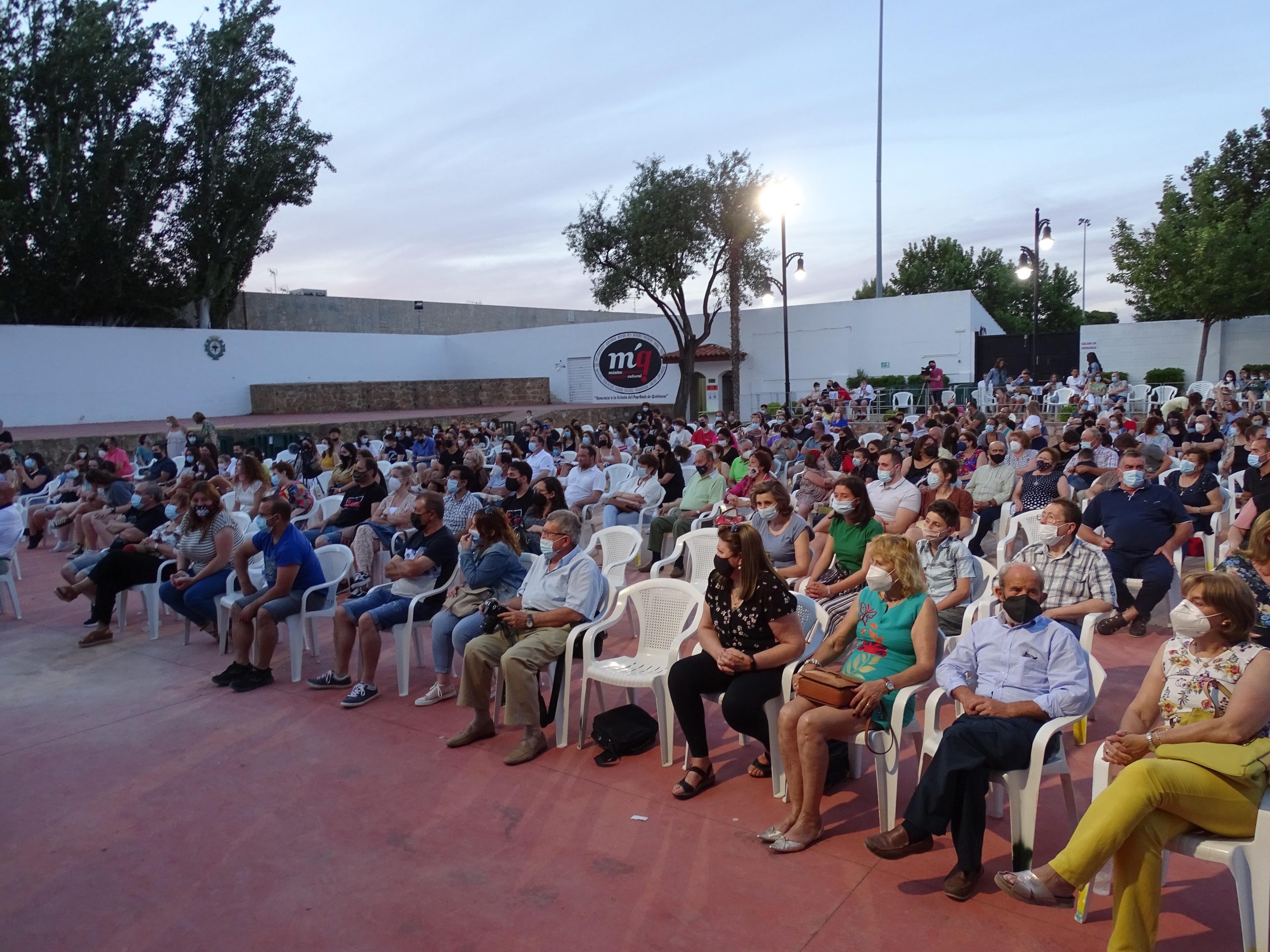 El evento, en el que se respetaron todas las medidas de seguridad establecidas frente al Covid-19, contó con numeroso público, entre el que se encontraban el primer teniente de alcalde, José María Viller y la concejala de Festejos, Ana María Serrano quienes transmitían a La Cochera su enhorabuena por la organización del espectáculo y por su apuesta por la música y la Cultura en la localidad.