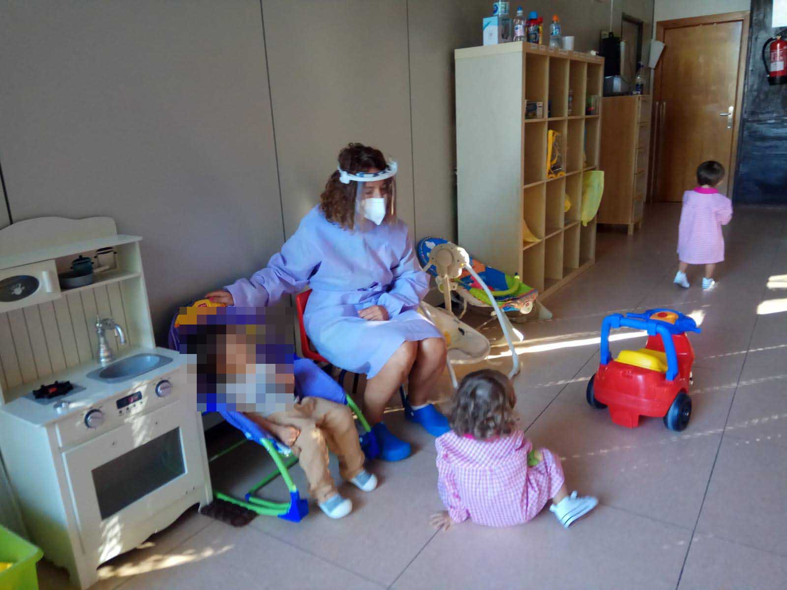 Montse Santos explicaba que los protocolos a seguir para la desinfección y la higiene de niños y aulas ha dado lugar a ampliar el apoyo de la plantilla para que el trabajo sea viable. “Son niños muy pequeños que necesitan la ayuda de los adultos para llevar a cabo ciertas funciones y eso ha hecho que tengamos que contar con más personal de apoyo”.